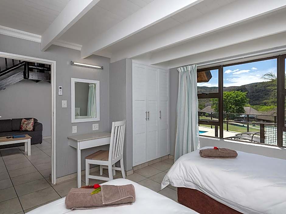 Boasting a private furnished patio with a mini pool, this non self-catering cabin includes 2 bedrooms, a living room and a bathroom. The cabin features a TV with selected DSTV channels, a coffee station and fridge.
